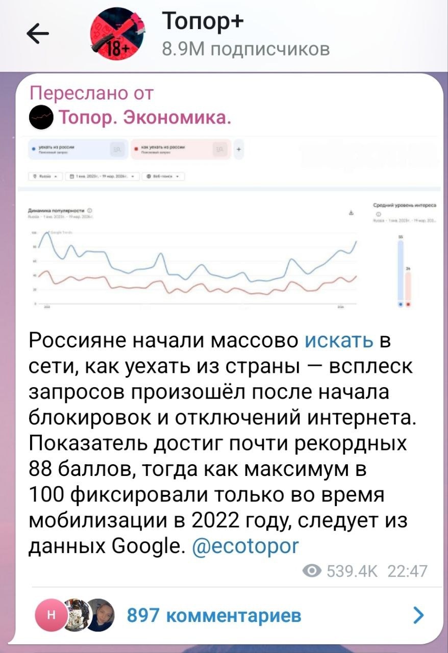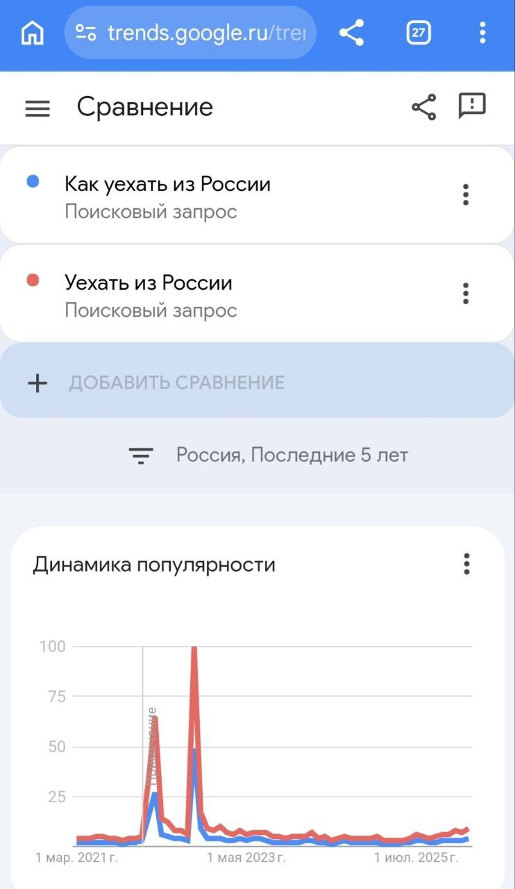 Значит, листаю я вчера ленту и вижу там пост о том, что россияне массово гуглят, как им из России уехать. И читаю дословно следующее: