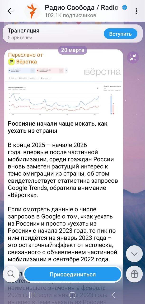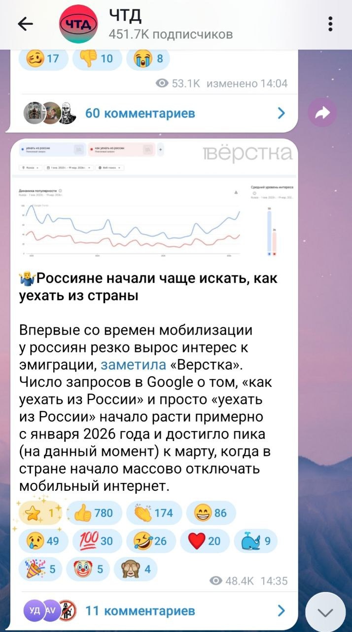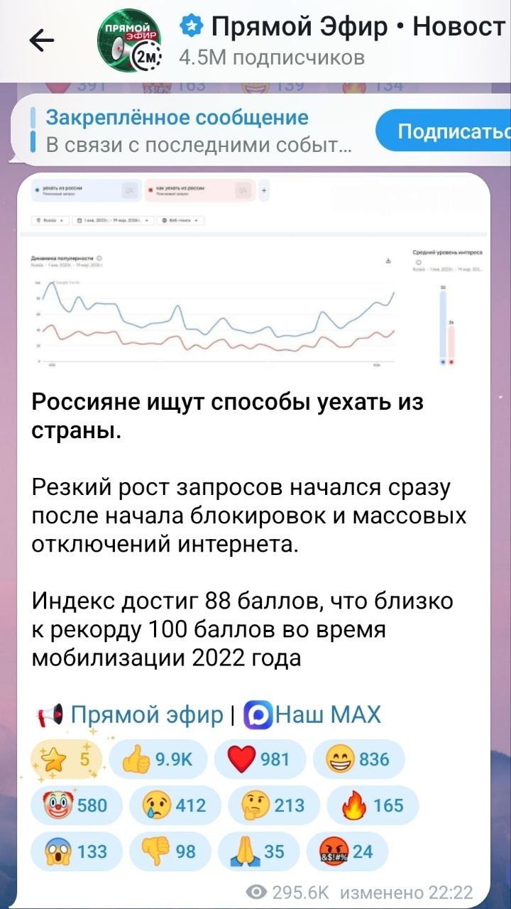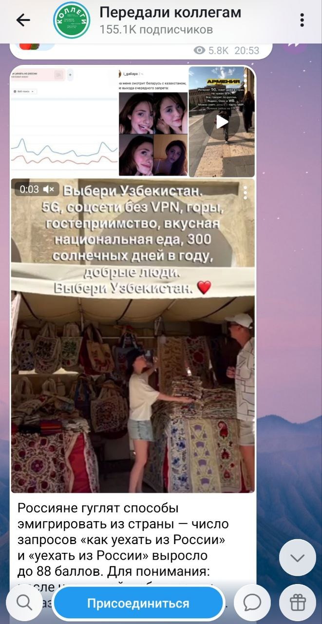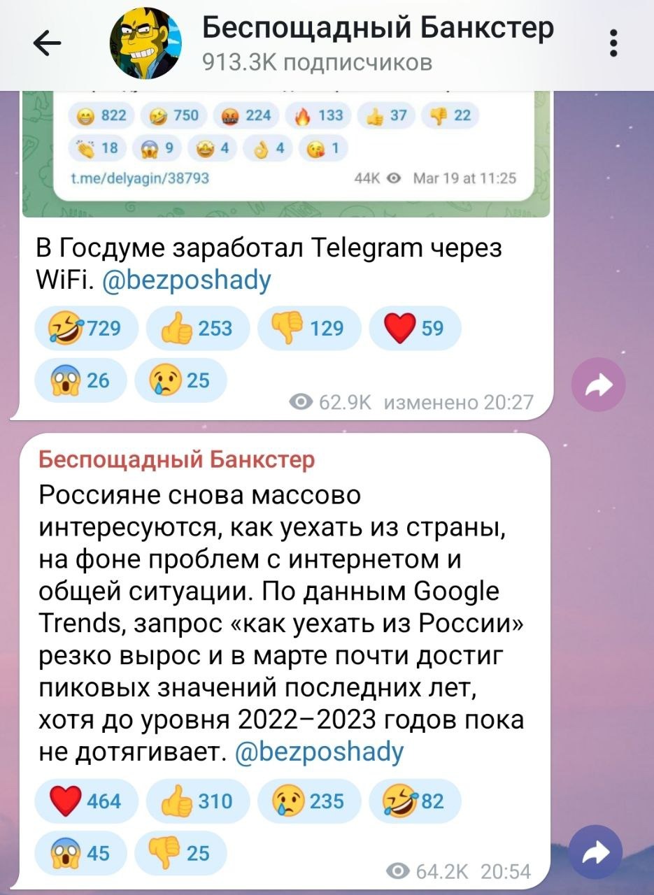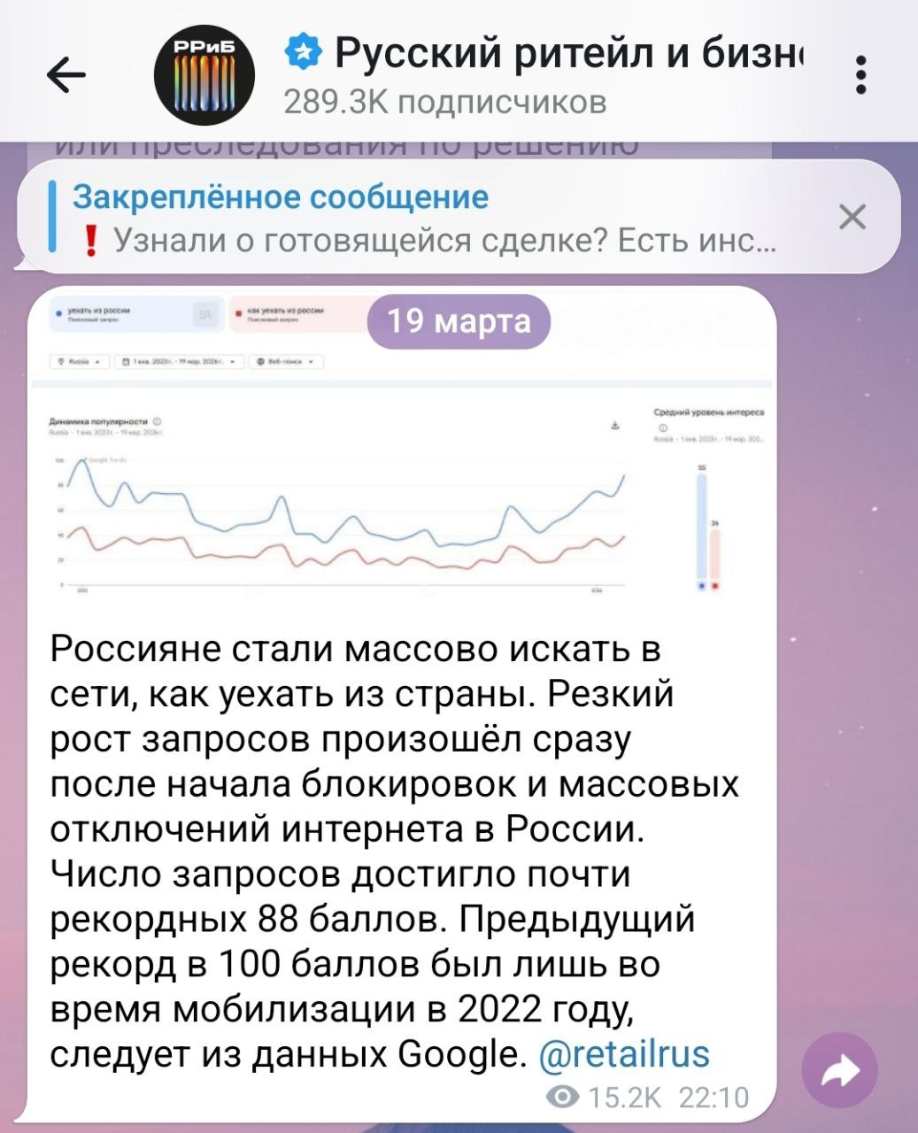 Либо можно через поиск, как я этих набирал. Нажимаете на лупу, потом на «посты», там вводите «уехать из России» и наслаждаетесь валом г***а в хронологическом порядке. Но там поиск зас*** мелкими каналами, не особо удобно. Однако сутки отлистать можно.