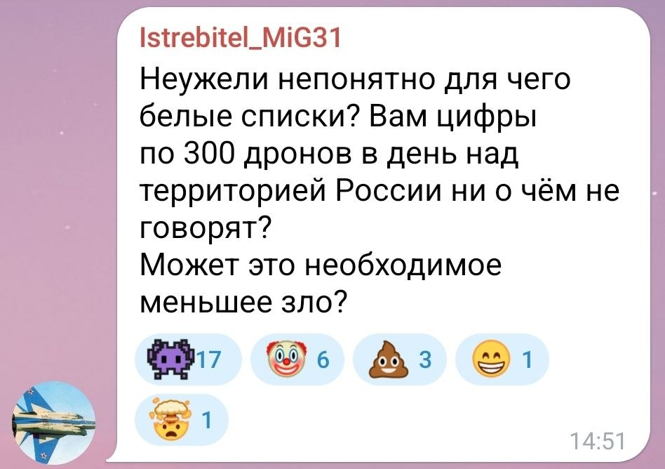 «Неужели непонятно, что дроны летают на оптоволокне, и поэтому Россия просто вынуждена заблочить проводной интернет, это необходимое меньшее зло. И вообще, некогда объяснять, заткнись или бандеровец!».