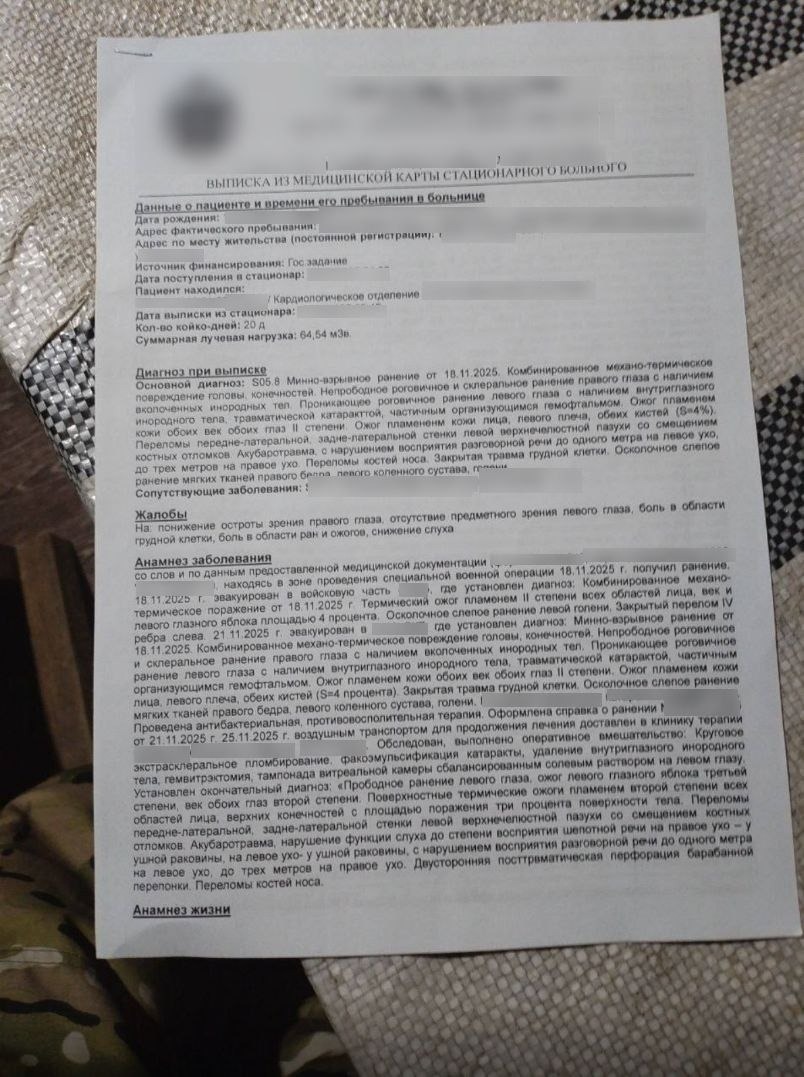 С ноября 2025 года военного с тяжёлым ранением глаза тупо гоняют по кругу.