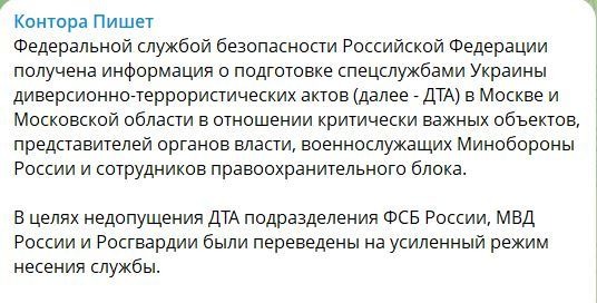 Там ФСБ отчиталось о куче всякого предотвращенного в Московском регионе. Например тут можно почитать. Но сообщение достаточно типовое, в крупных СМИ примерно тож самое. Суть: