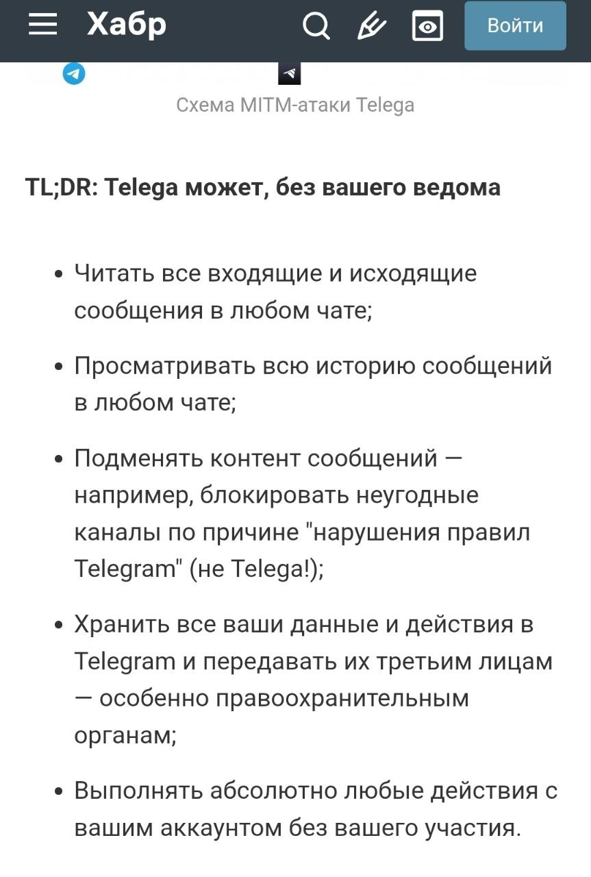 Крч, че по итогу? Если вы приложением Telega пользовались, то поздравляю. Вы, ВЕРОЯТНО, подарили свои переписки непонятно кому. Лучше бы вам освоить прокси, сменить пароли и эту х***ю удалить. Если же вы будете упорствовать в своих заблуждениях, то в одном из следующих обновлений Телеграм — об этом уведомят всех ваших собеседников. Что вы вашу с ними переписку слили х** пойми кому. Ну и если там обсуждались рецепты блинов, то, в общемто, и х** с ним. А если там чет прям серьезное, то е***ь ты долб***, братишка, земля тебе пухом. А если ты в какойнибудь секретной-х***ной конфочке состоишь со всякими увожаемыми людьми, которые о судьбах Родины беседуют — то ты вообще е***ий дегенерат хуже Яна Матвеева)