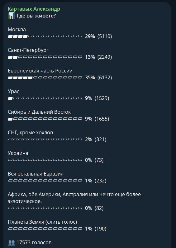 И както там уже совсем другие цифры в ответах, в основном потому, что заливы всех запарили и какой смысл голосовать туда, куда всё равно докинут ботов до красивой кондиции)