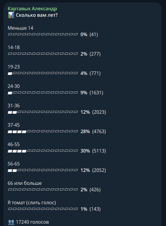 Ну и в обе голосовалки немедленно начали лить ботов. Как мне потом сказали специалисты, обнова работала только у тех, кто обновил ТГ до последней версии. А ботов в принципе стараются лишний раз не обновлять. Поэтому в стандартные голосовалки как лили, так и льют до сих пор. Поэтому я просто зафиксировал, что чет оно не работает.
