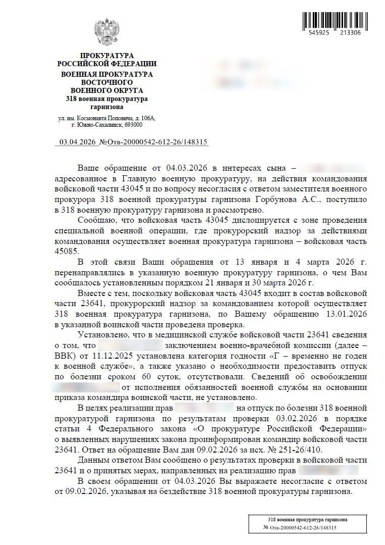 Итог — отписка 318-й прокуратуры гарнизона ВВО. Образцовый документ о том, как с умным видом на нескольких листах не решить вообще ничего.