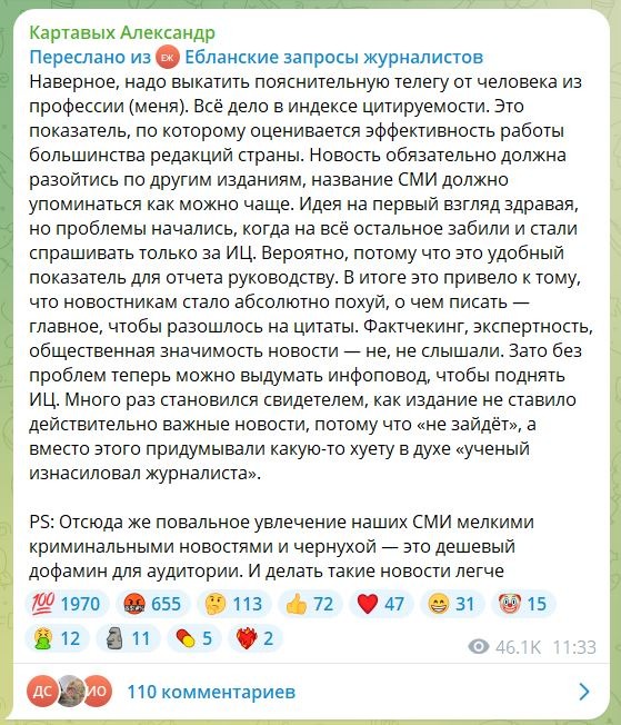 Ну, тоесть дайте им уже ктонибудь п***ы, этож же невозможно. Должен же быть минимальный фактчекинг. Я нигде не смог найти ОТКУДА уважаемый автор уважаемой интернет-газеты высосал саму новость, этой записи просто нет в интернете. Соответственно, я просто не могу сам пойти и посмотреть че там кто сказал, я должен либо доверять уважаемому изданию, либо ему не доверять. И уже не первый раз оказывается, что доверять не надо. Что официальный, аккредитованный первоисточник новости может просто нап***еть с три короба, а потом делать вид, что ничего не случилось.