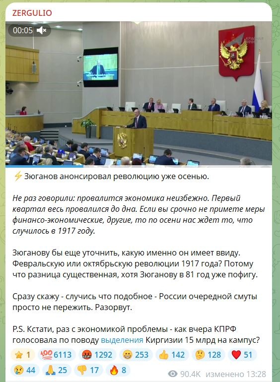 Умеет Зюга атмосферу разрядить, не без этого) «Коммунисты требуют не повторить 1917 год», неукоснительное соблюдение взаимоисключающих параграфов)