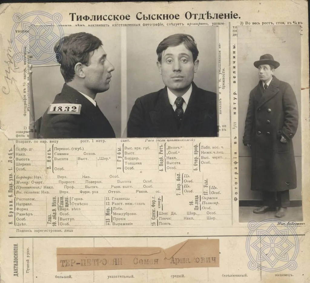 Сыскная карточка на Семёна (Симона) Тер-Петросяна. 1913 год. Источник