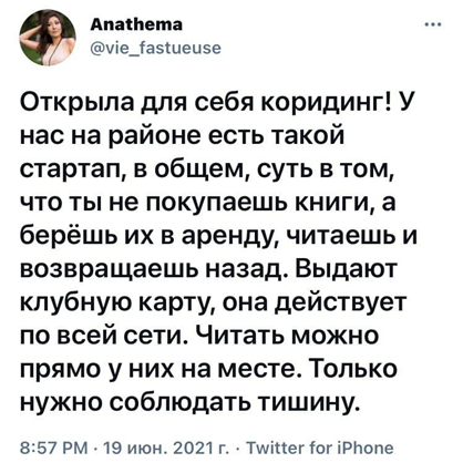 Что там происходит в библиотеках сейчас — не знаю, не могу понять и объяснить. Но жизнь там точно есть. Госбюджет, десятки тысяч сотрудников, помещений. Было бы интересно узнать, но времени нет разбираться, надеюсь, там не торгуют шампунями, пряниками и гречкой, как на почте.