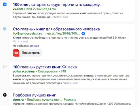 А ещё есть всероссийские «диктанты» разных посолов, школьный курс литературы с обязательными позициями, темы сочинений для ЕГЭ и всё такое.