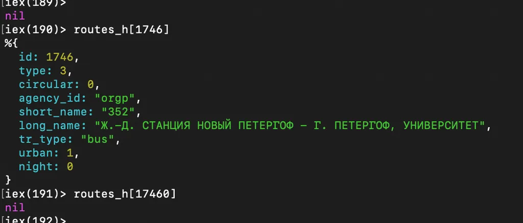 Теперь можно за константное время по ключу быстро либо получать маршрут, либо получать nil если маршрута с таким ключом нет: