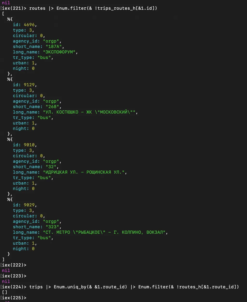еще тут возникает желание проверить не является ли название маршрута склейкой названий первой и последней остановки, но мы пока не видели трассировки маршрутов по остановкам.