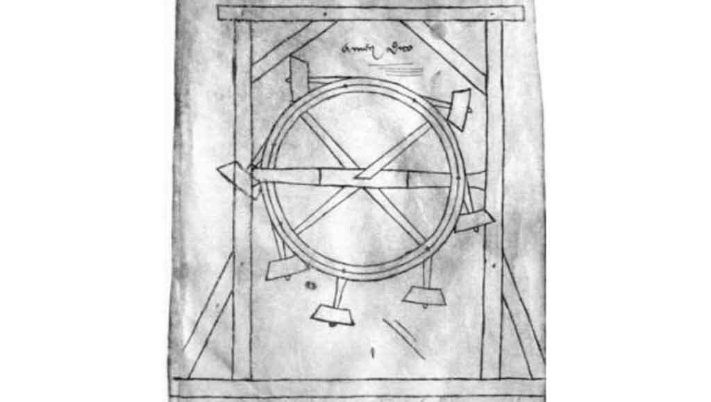 Это колесо часто упоминается как первый задокументированный случай вечного двигателя, хотя некоторые историки относят самую раннюю идею рerpetuum mobile аж к первому веку нашей эры.