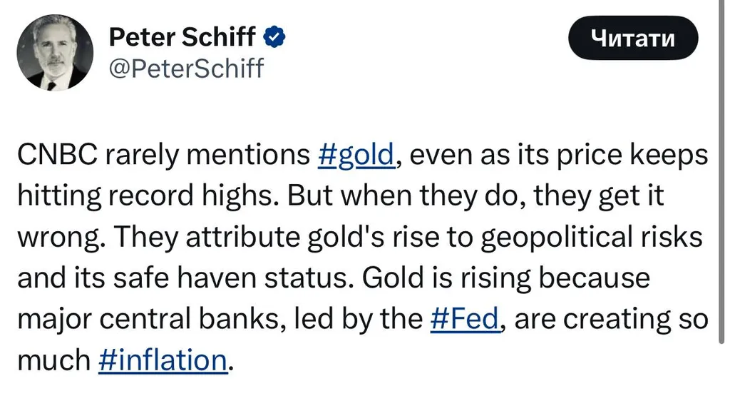 Золото растет, потому что крупнейшие ЦБ, во главе с ФРС, создают слишком много инфляции, — Peter Schiff.