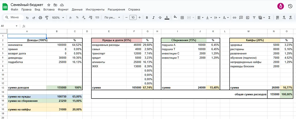 Таблица «Семейный бюджет» — это лучшее, что я делал со своей финансовой жизнью. Копируйте её себе, изменяйте под себя и наслаждайтесь собой.