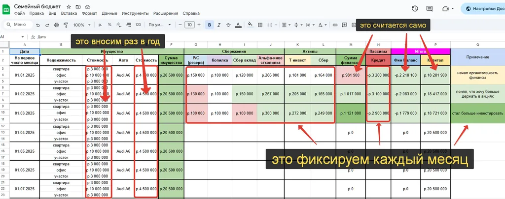 Сегодня подготовил для вас табличку, которой много лет пользуюсь сам, постоянно её совершенствуя. Настроил всё так, чтобы вести было максимально комфортно (больше автоматических формул, меньше операций руками), а результат был наглядно понятным.