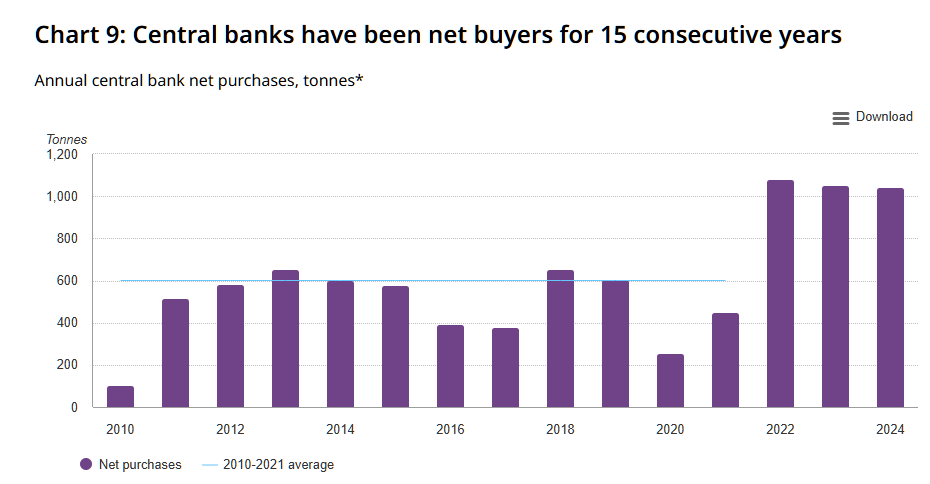 Начиная с 2022 года центральные банки всего мира начинают активно и на постоянной основе закупать золото для своих резервов, что очевидным образом сигнализирует о том, что мир теперь многополярный, а уход от гегемона — лишь дело времени.