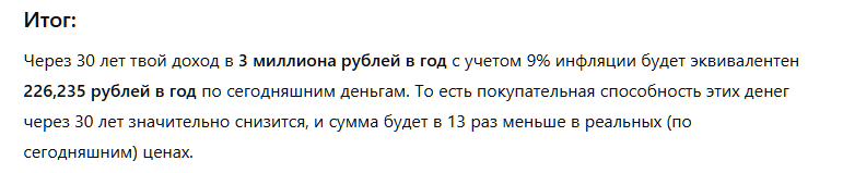 Давайте представим, что у вас сейчас, в 2025 году, лежит 30 миллионов рублей на счету и в запасе есть ещё 30 лет жизни.