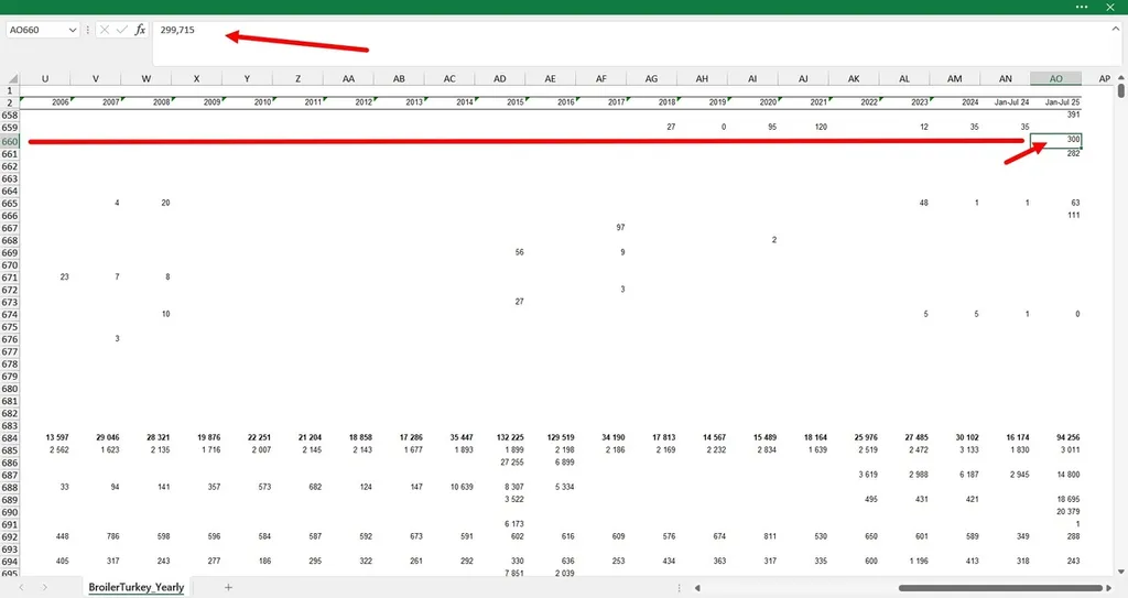 Двигаемся в самый конец, и в колонке «Jan-Jul 25» стоит значение 299,715: