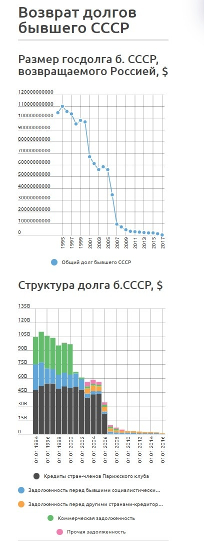 И это притом, что все внешние долги бывших республик СССР взяла на себя Россия и выплачивала их до 2017 года.