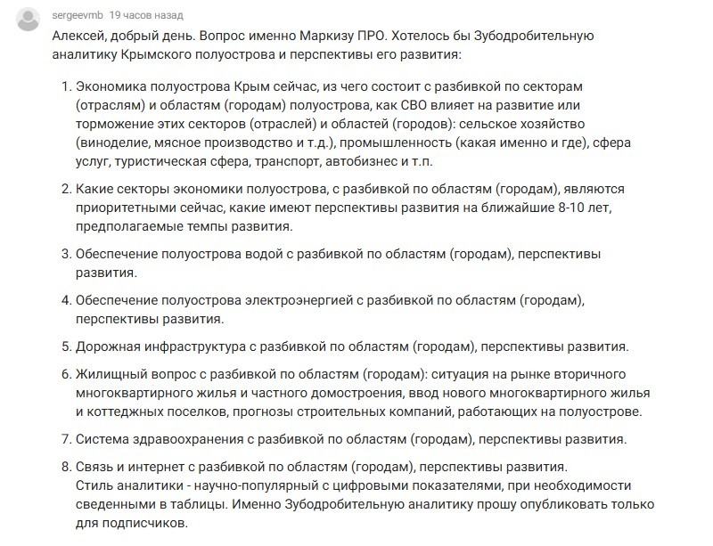 Задать вопрос Маркизу «Обзорная аналитика» можно тут: sponsr.ru/dbka/113331/Voprosy_Markizu_PRO_avgust
