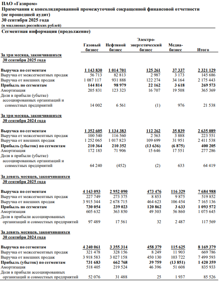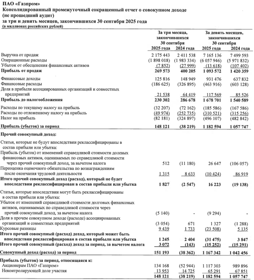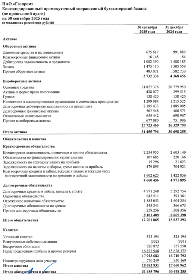Газпром. Отчет МСФО за 9 месяцев 2025 г.