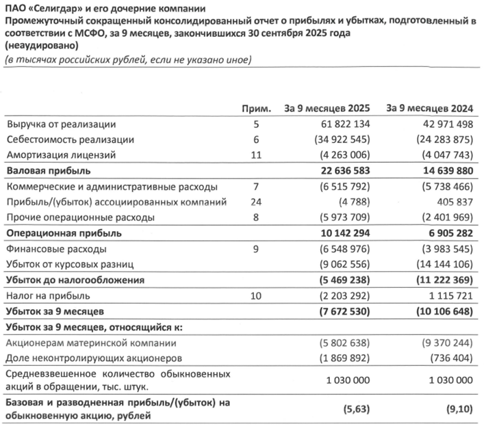 Селигдар. Отчет МСФО за 9 месяцев 2025 г. Роковой хедж.
