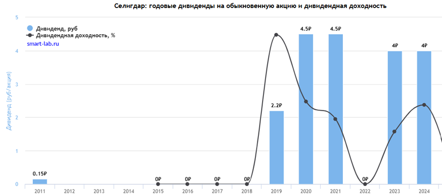 Артель «Селигдар» с 1975 года разрабатывала месторождения золота в Якутии. В 2007 г. создано ПАО «Селигдар». Позднее компания занялась добычей олова, меди и вольфрама, которые приносят около 12% выручки. По итогам 2025 г. производство золота превысит 8 тонн.