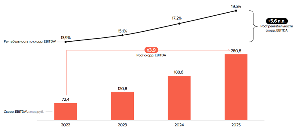 Рентабельность скорр. EBITDA = 19,5%.