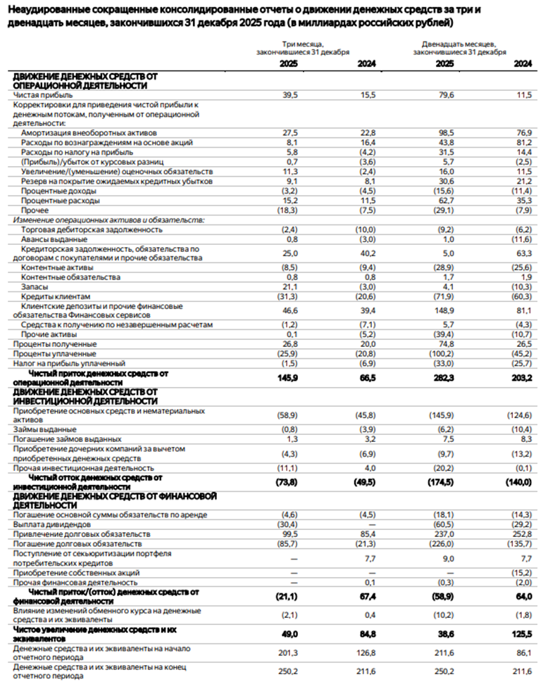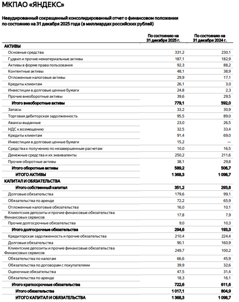 Яндекс. Отчет МСФО за 2025 г.
