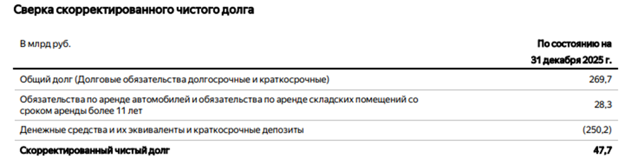 Скорректированный чистый долг = 47,7 млрд руб. Отношение скорр. чистого долга к скорр. EBITDA = 0,2.