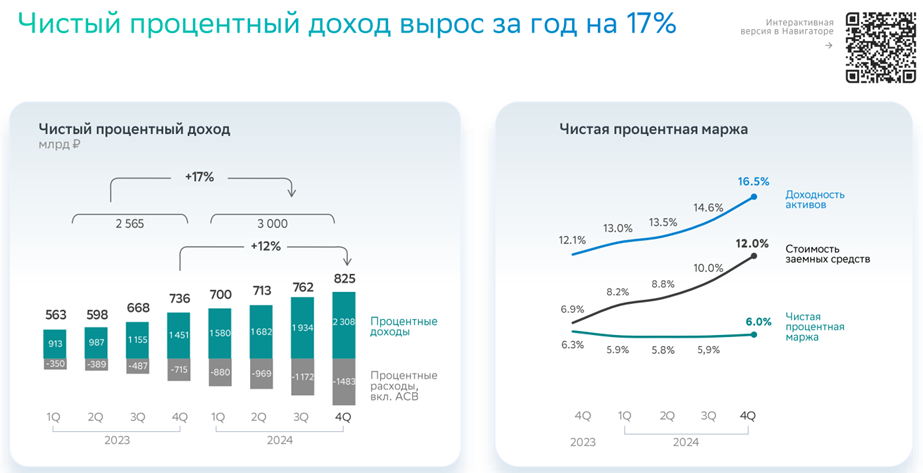 Чистый процентный доход составил 3 трлн руб (+17%). Доходность активов растет прямо пропорционально стоимости заемных средств, чистая процентная маржа за год = 5,9%.
