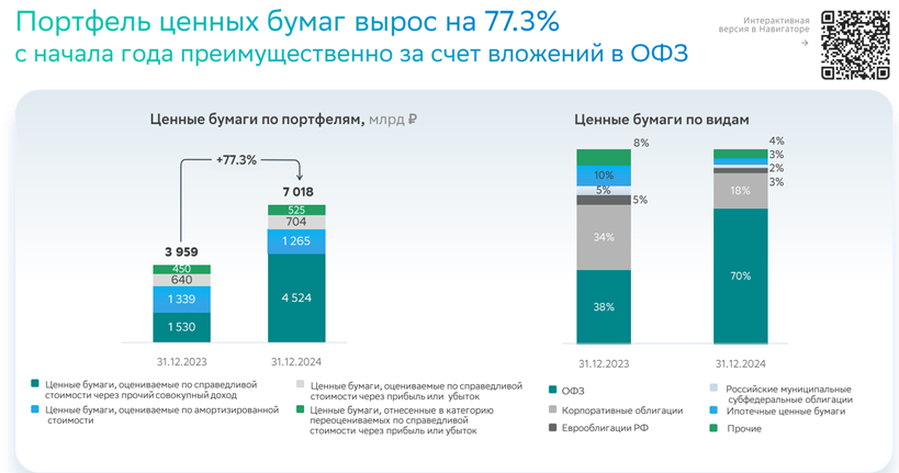 Сильнейший рост портфеля ценных бумаг на 77,3% объясняется покупками ОФЗ.