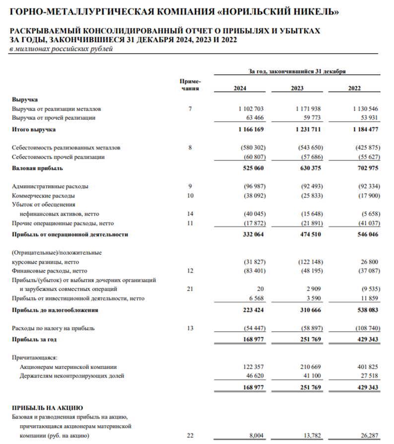 ГМК Норильский никель. Отчет МСФО за 2024 г. Дивидендов нет, но вы держитесь!