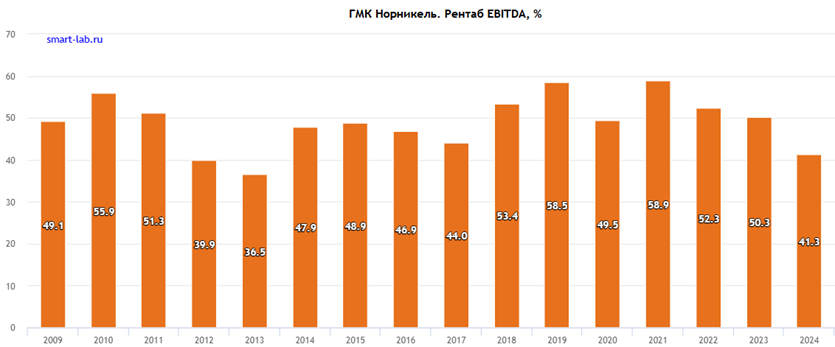 Рентабельность EBITDA была ниже лишь в 2013 году — 41%.
