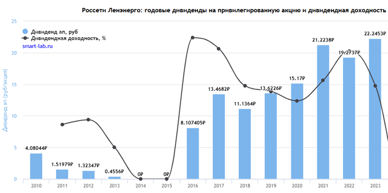 Стоимостная оценка компании выше, чем у конкурентов, из-за выросших в 2023 году вдвое обыкновенных акций. Владельцам префов важнее стабильная, предсказуемая и высокая дивдоходность. Россети Ленэнерго-п оставляю в списке рекомендаций второй очереди.