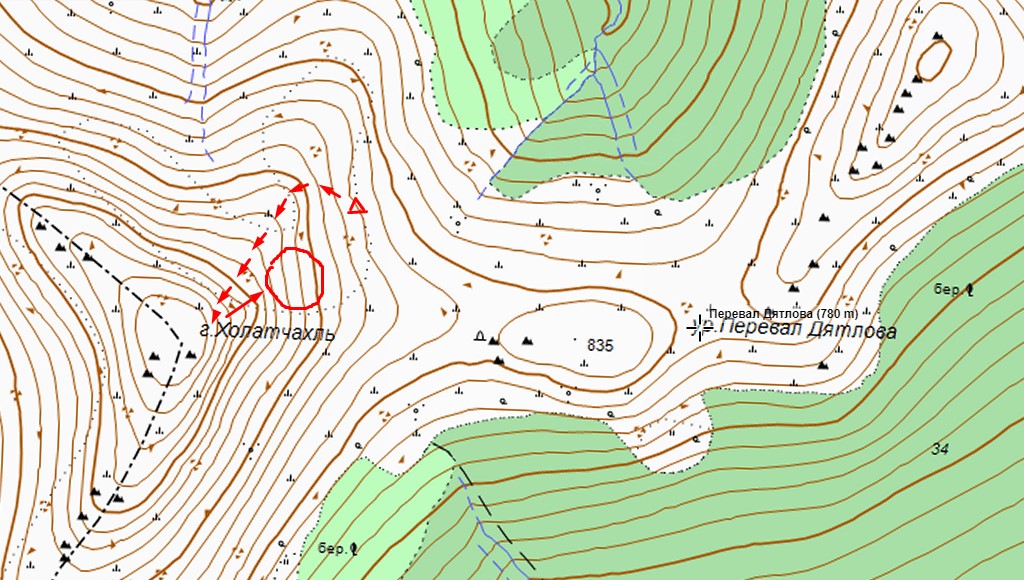 получения травм и установки палатки именно в этом месте на склоне https://forum.dyatlovpass.com/index.php?topic=1302.msg20412#msg20412