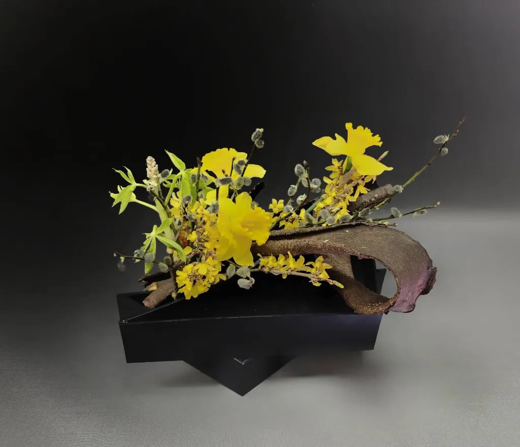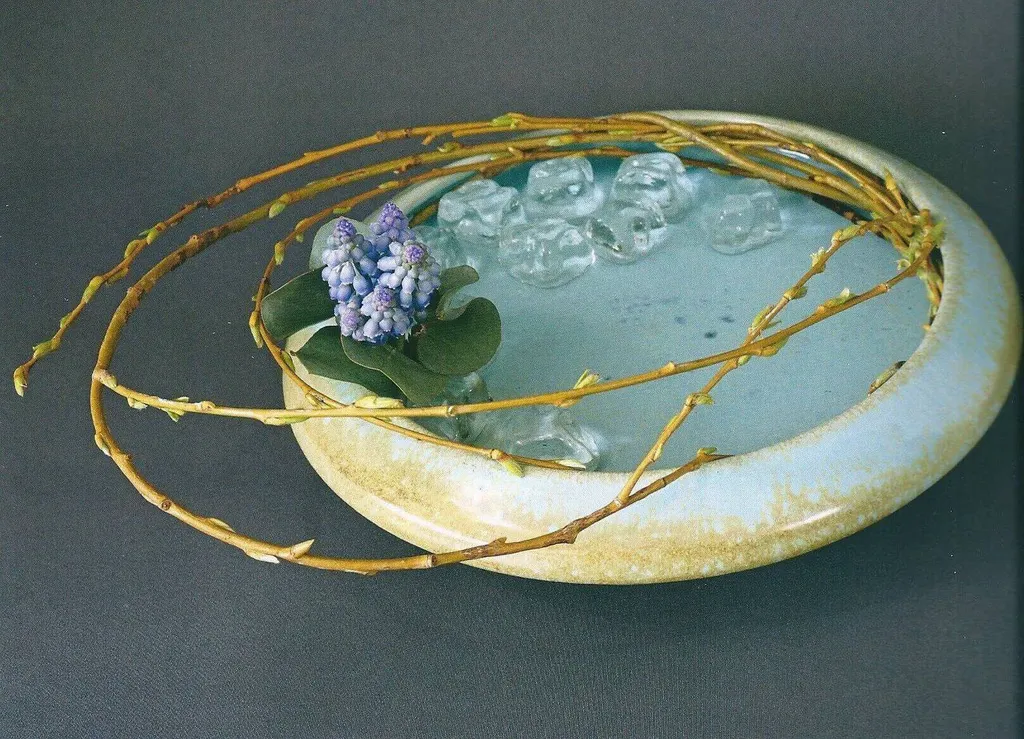 «Для создания весенней икебаны иногда достаточно взять одну-две ветки с готовыми распуститься почками и один цветок. И композиция будет совершенной и просто дышать весной, — пишет Елена Кильчевская, преподаватель икебана школы Согэцу высшей степени Riji. — Альтернативой минимализму может послужить весенняя икебана из большого количества сильно изогнутых и готовых к роспуску веток. Такая композиция создаст ощущение легкого весеннего ветра, чистоты и прозрачности солнечного света».