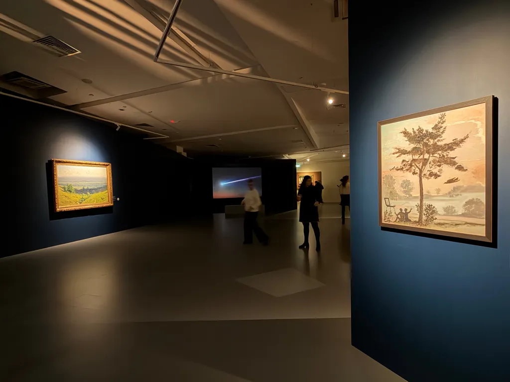 И удивительно то, как хорошо живопись Саврасов сочетается с современным искусством. На выставке нас жду проекты Тишкова, Полисского, видеоарт Митлянской и снова «Аврора» группы Синий суп.