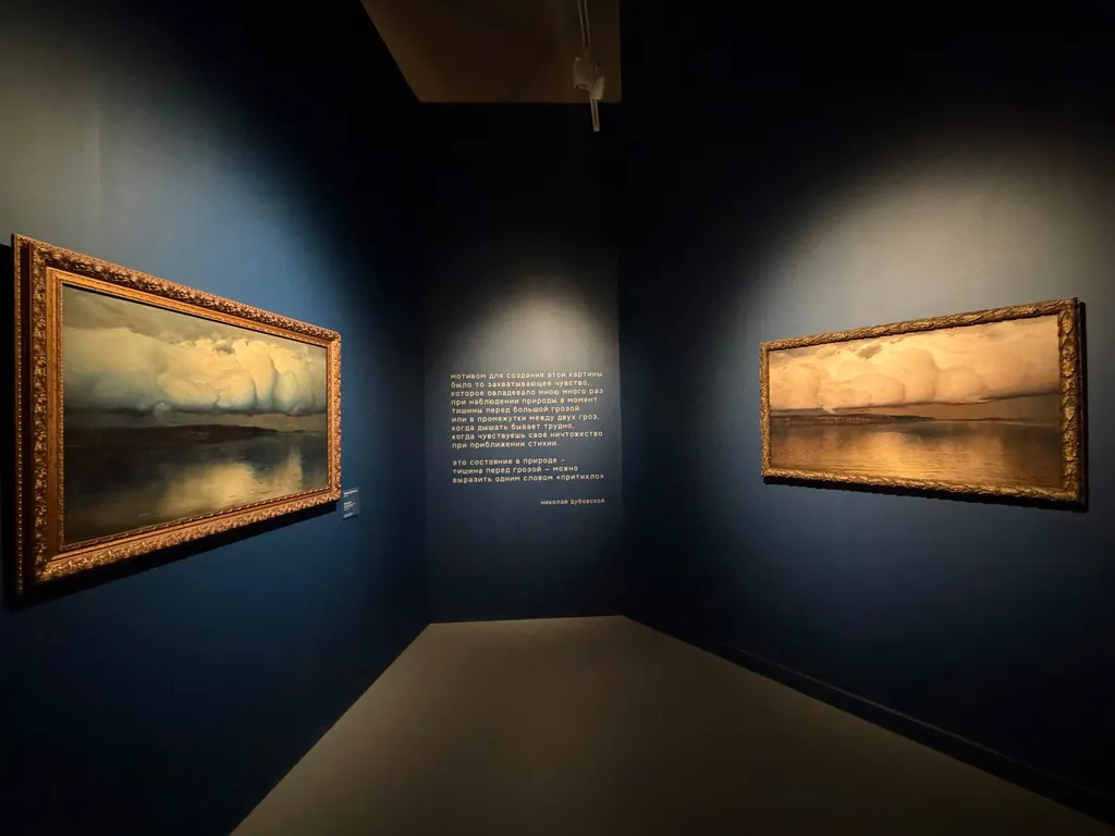 Очень хорошо смотрятся художники 20-го века: Нисский и Мыльников. Отдельная радость — две версии картины Николая Дубовского «Притихло».