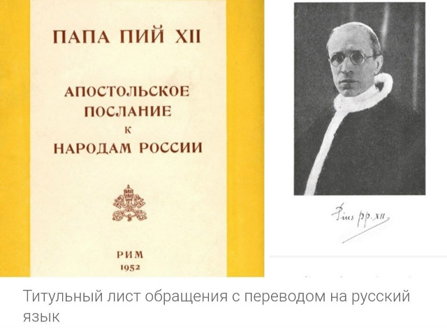 Итак, спустя 7 лет после победы Советского Союза над фашистской Германией, Папа Римский Пий 12 публично обратился к народам России и призвал отречься от Православной веры, а заодно от идеологии Советского Союза, а затем массово переходить в католическую церковь. На 25 листах он изложил свою «пламенную речь», рассказывая о том, что Ватикан и Папы-предшественники всегда искренне любили Россию и желали её народу только мира и процветания.