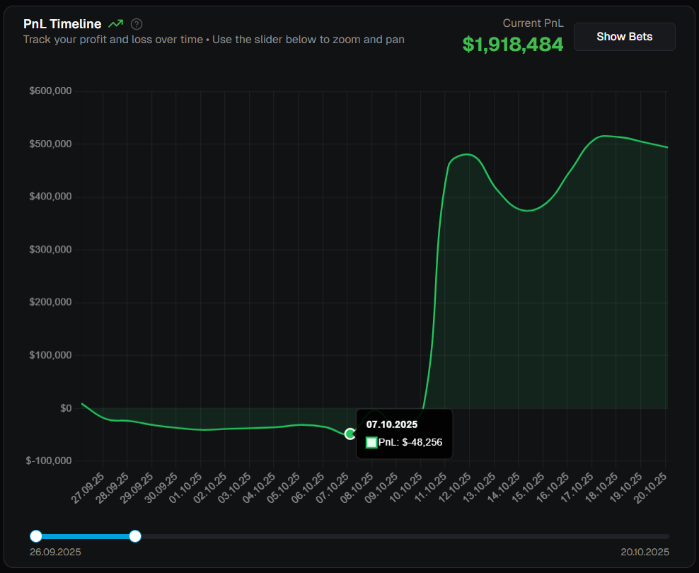 У других топовых трейдеров Полимаркета есть крутейшие технологии и приёмы, которыми этот трейдер похвастаться не может. Так что по-моему мнению, он пока незаслуженно является лидером рейтинга.
