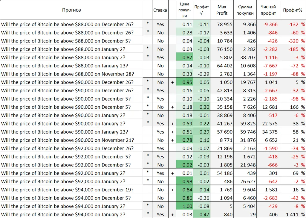 На Полимаркет доходность и стратегия игры сильно зависят от того, какой блок цен используется для открытия сделки. Поэтому необходимо рассмотреть статистику сделок, разбитую на ценовые блоки.