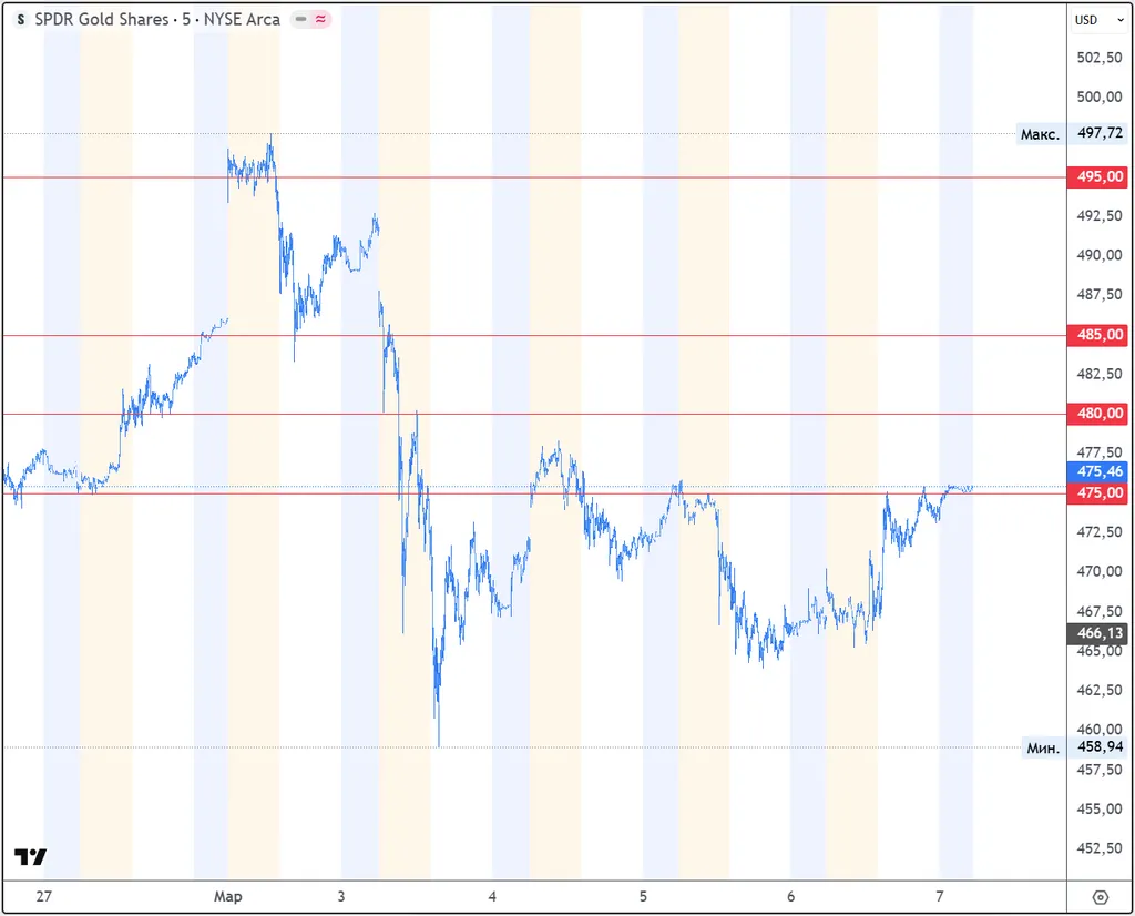 Торги золотом закрыли в районе цены 474.60. То есть, опционы страйка 475 успешно были сожжены.