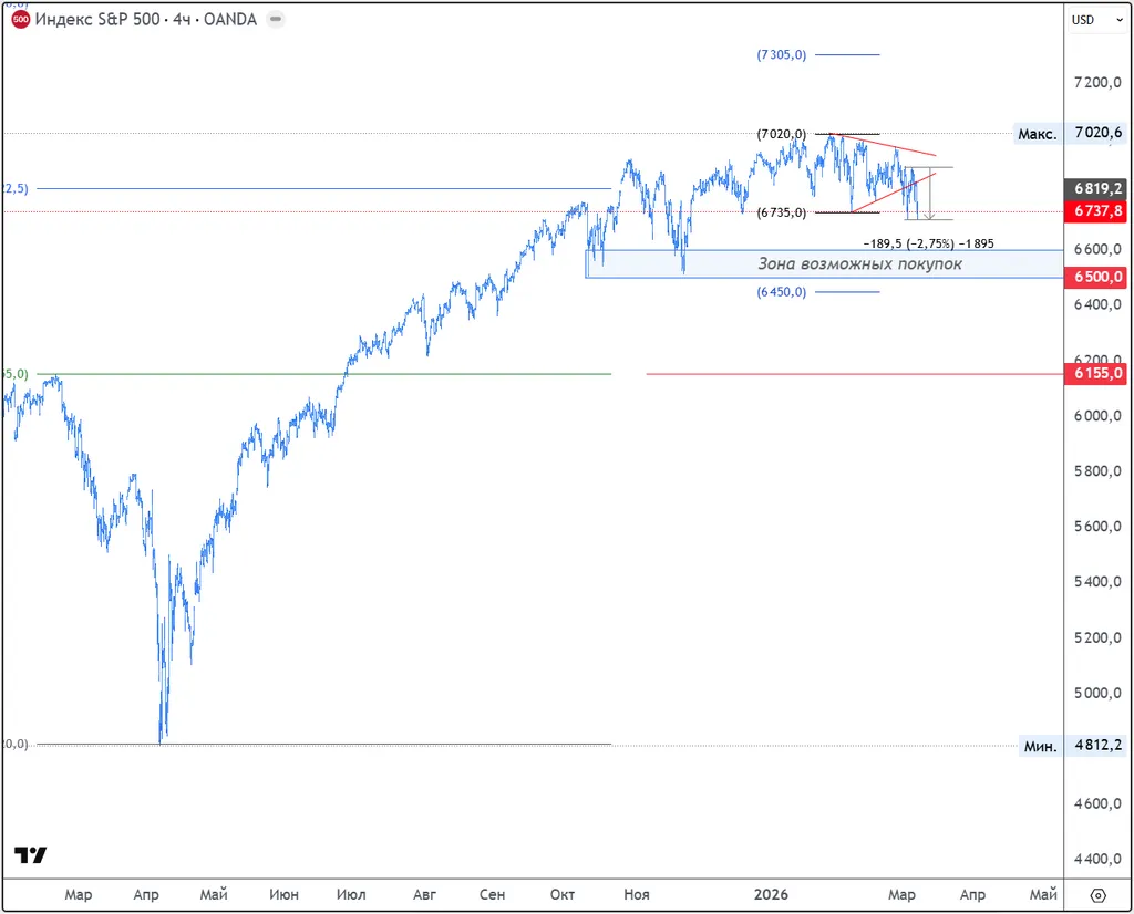Основные индексы США пока очень умеренно проседают, потому что часть секторов экономики США очень выигрывает от роста цен на нефть.