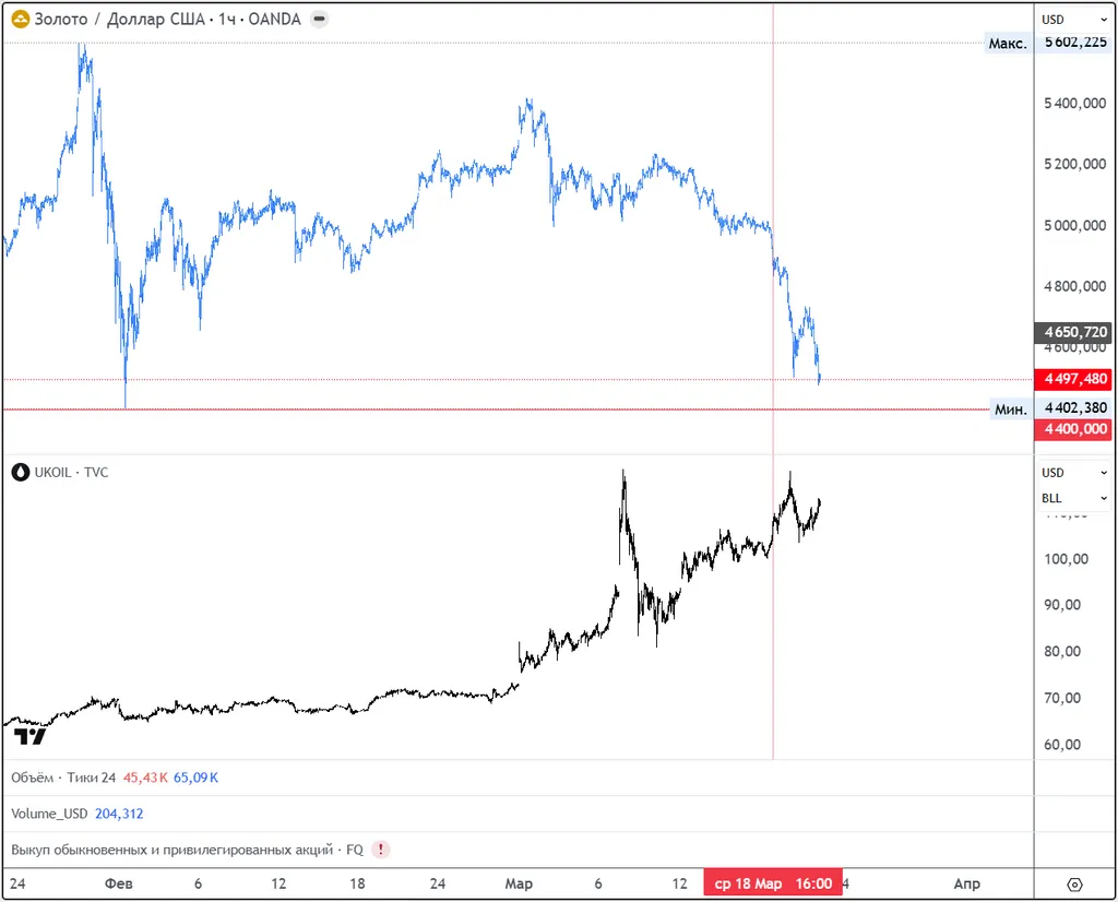 Какой из сценариев реализуется, увидим. Если Brent закрепится выше 120 и война в Иране будет эскалироваться, золото могут распродать.