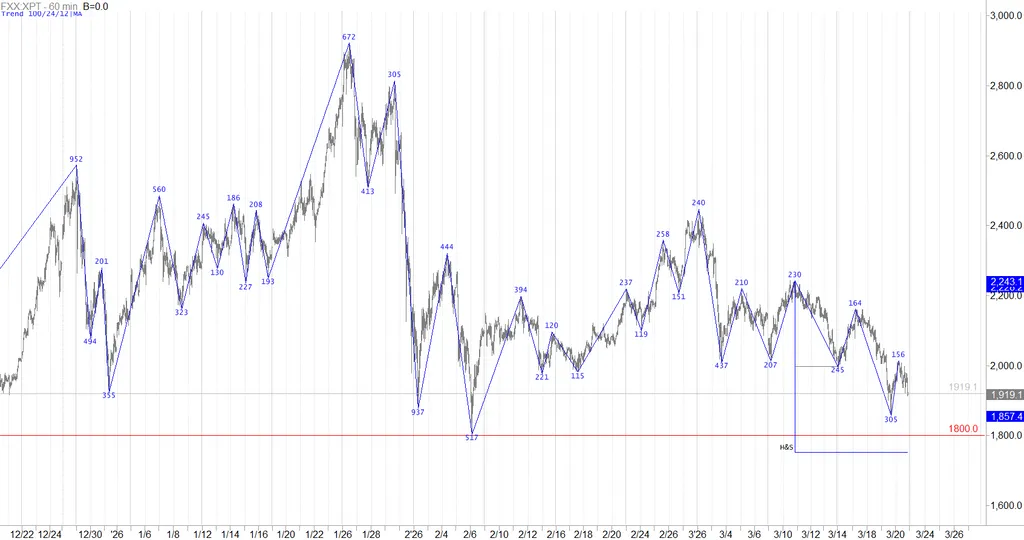 На платине могут отработать небольшую модель «голова и плечи». Близость поддержки 1800 — не лучший вариант для шорта. Платина — инструмент сложный в текущих условиях.