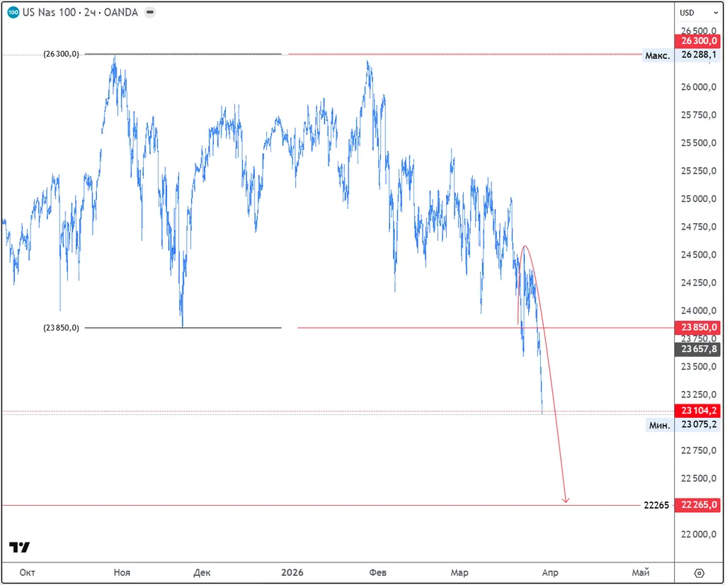 Техническая цель NDX в районе 22265.