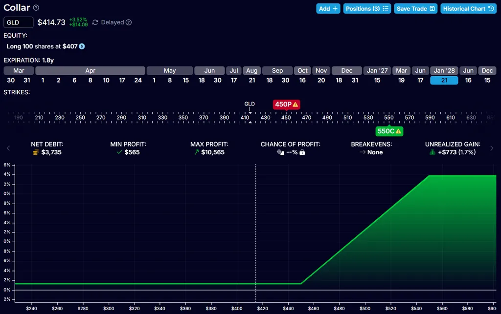 Стрим Солодина — пара минут про раздачу денег на collar GLD в случае долгосрочного роста цены золота. Насколько это может быть выгодно, не берусь судить, потому что не торгую опционами и нет платных подписок на данные по опционам. Меня интересует горизонт месяц, два и на большие сроки я рассматривать сценарии с опционами не буду.