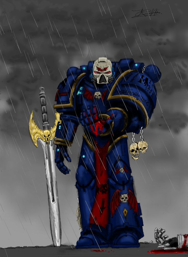 Про Кроагера, который стал хаоситом, наверное, можно не говорить? С ним всё понятно и так. Он был интересен на страницах «Ангел Экстерминатус», когда он один выжил из всей роты, что была под командованием Харкора, и потом Пертурабо, увидев, как сражается Кроагер, поставил его на место Харкора. И. всё, ибо в «Первой стене» мы видим… откровенно говоря, недалёкого человека, который становится кхорнитом, после общения с Кхарном. Нет, единственно, что мне в Кроагере понравилось — так это то, что он каждый вечер снимал с себя броню и аккуратно вещал детали её на специальную стойку. Правда то, как он общался с пленницей, в итоге, стоило ему жизни…